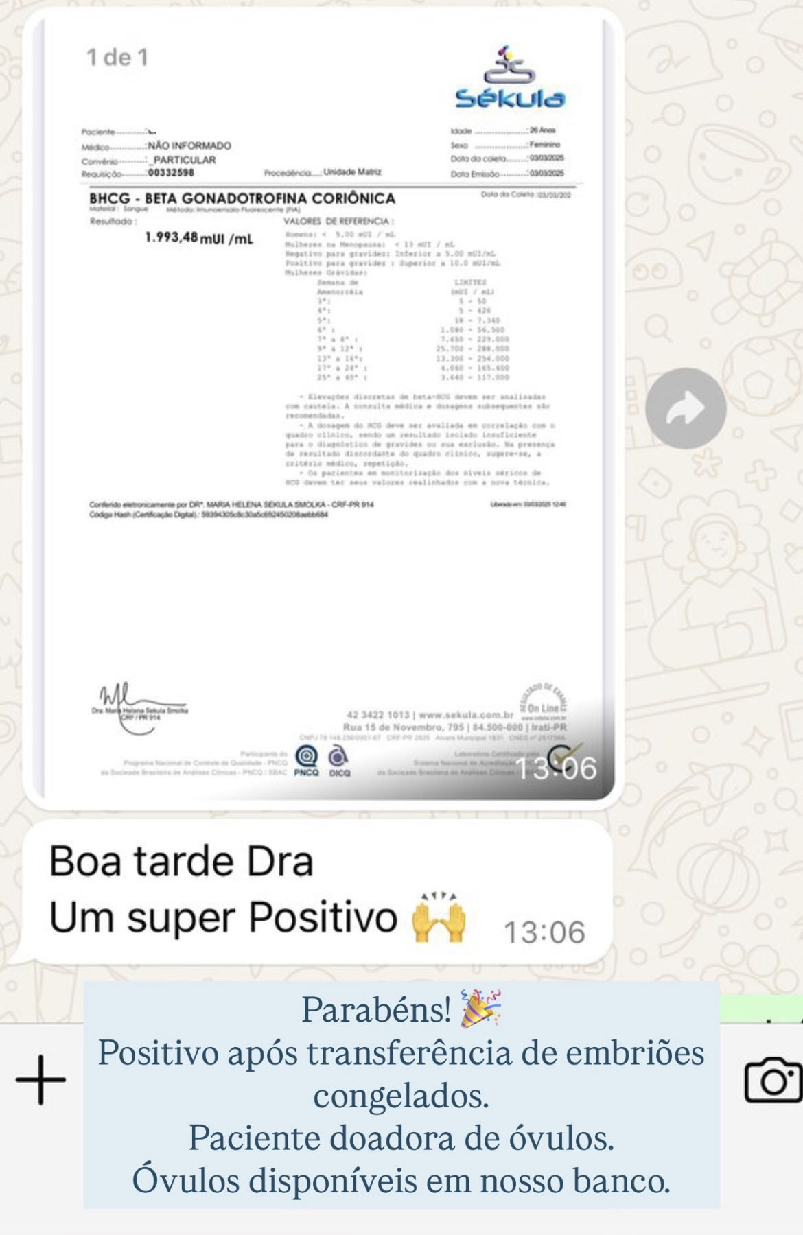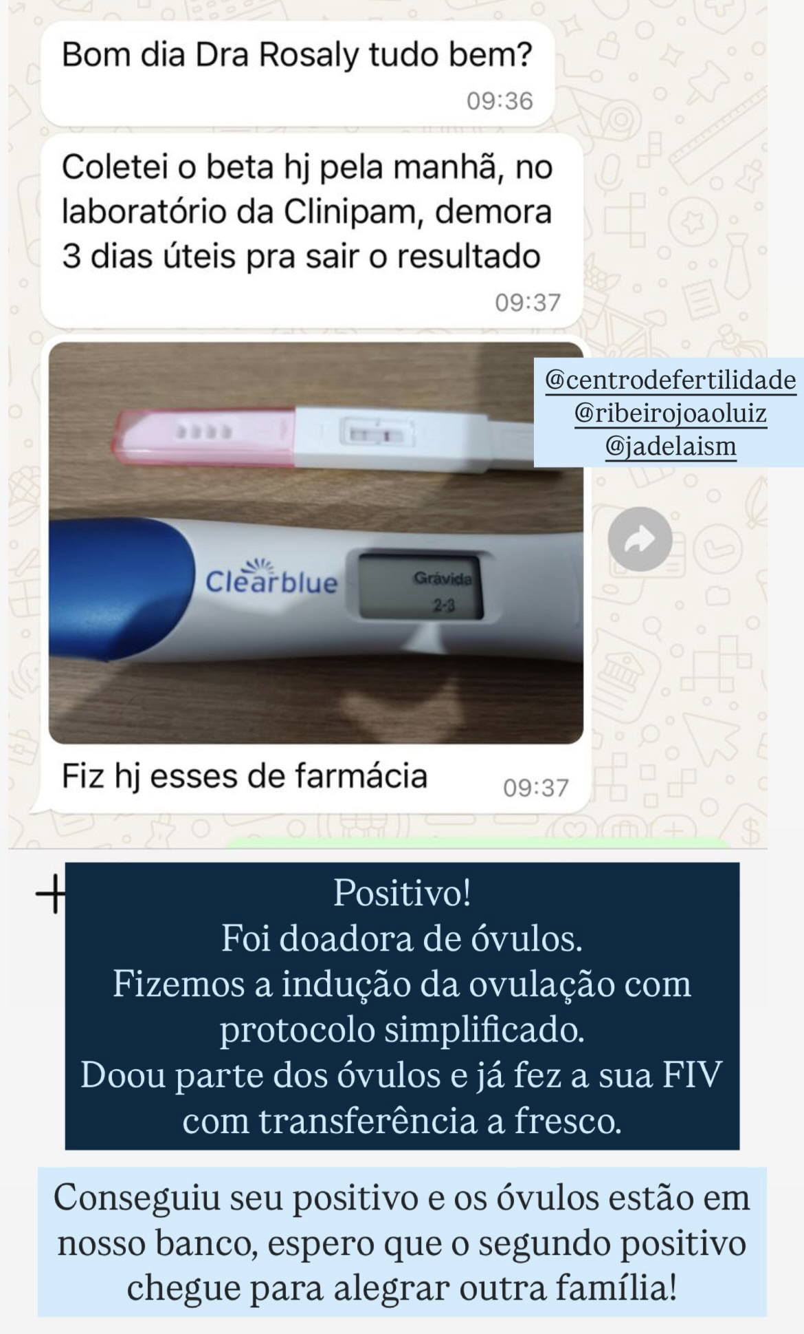 | Experiência em ovodoação | ✓ Desde 1992 |